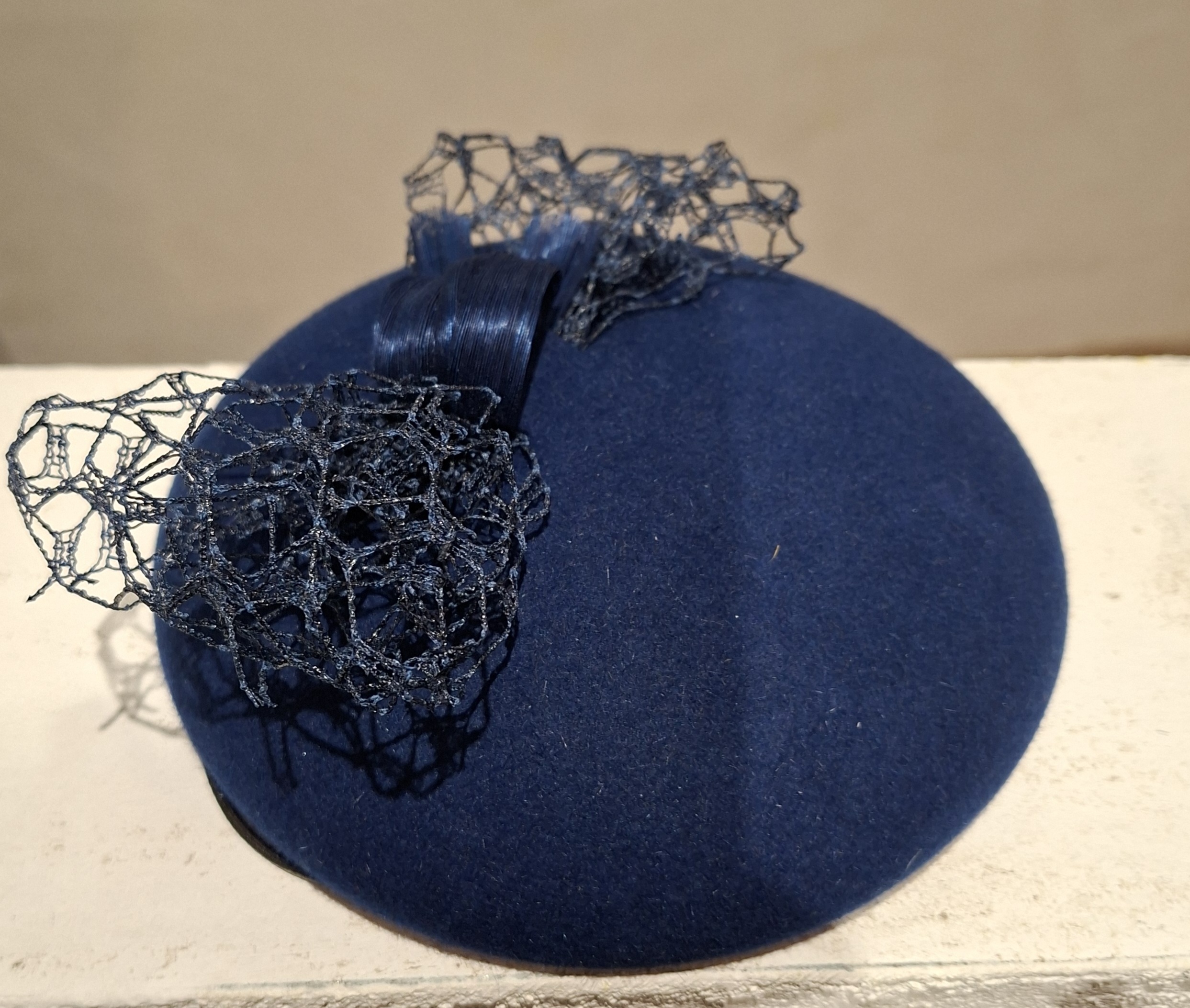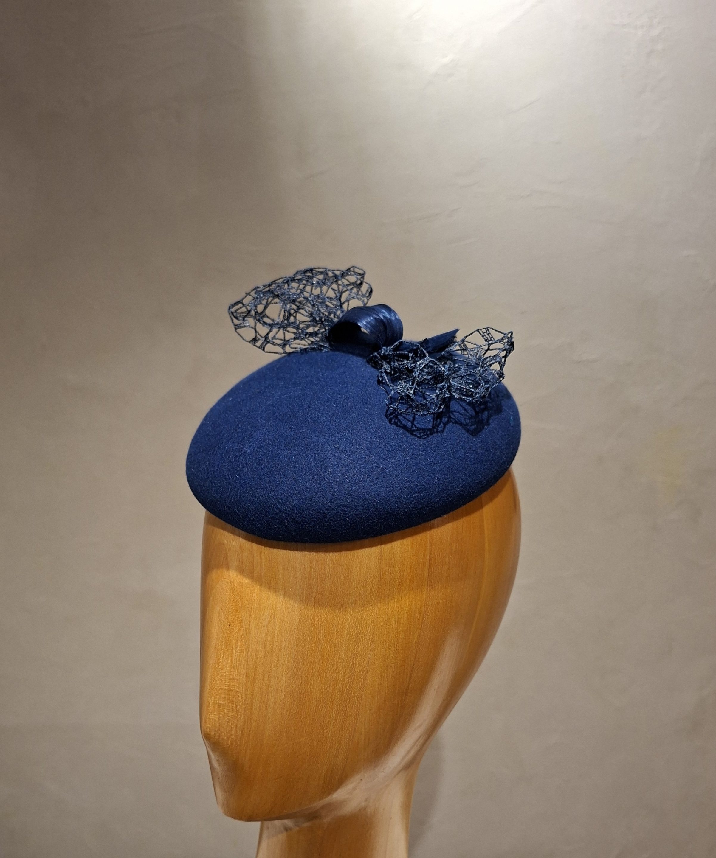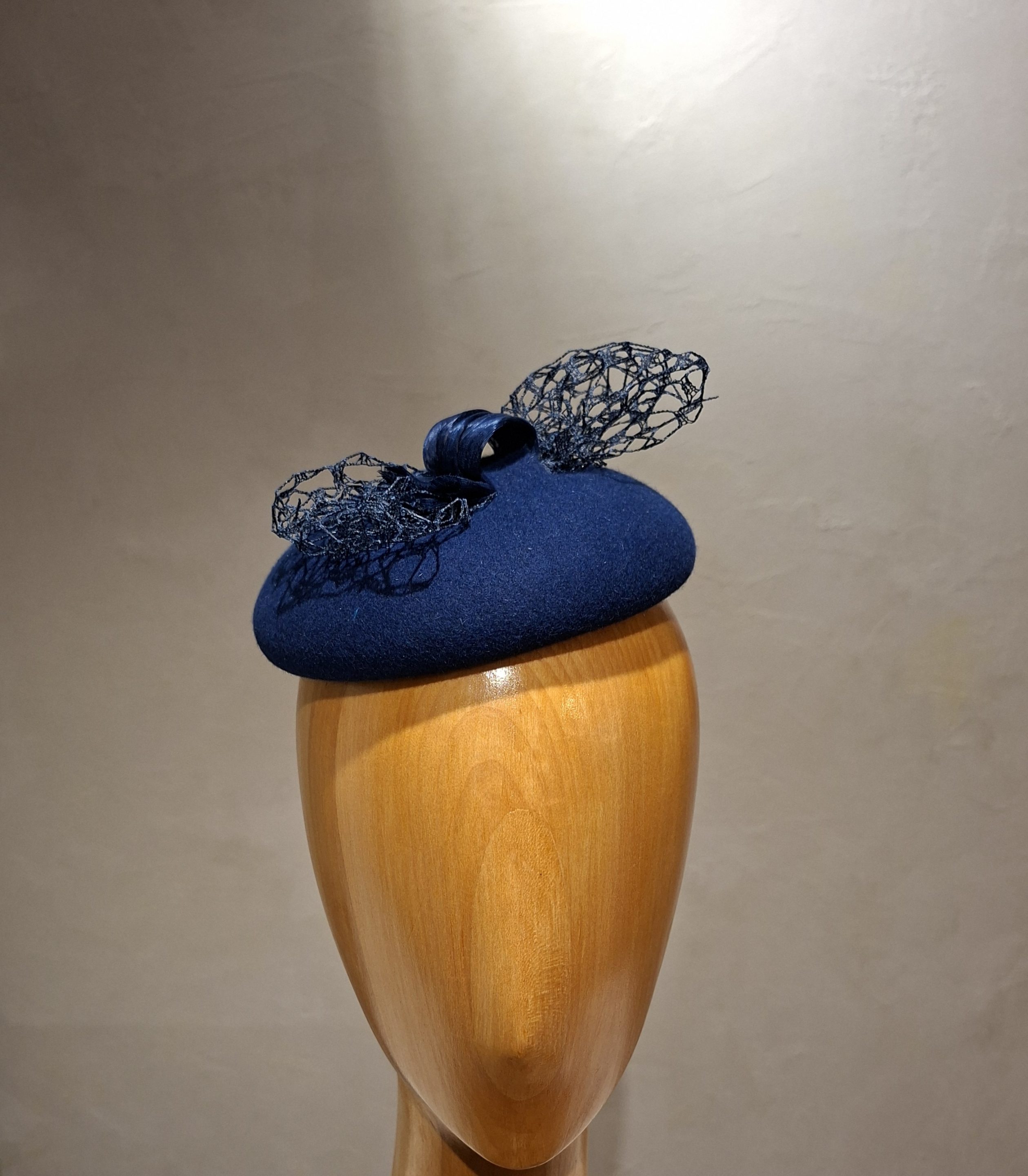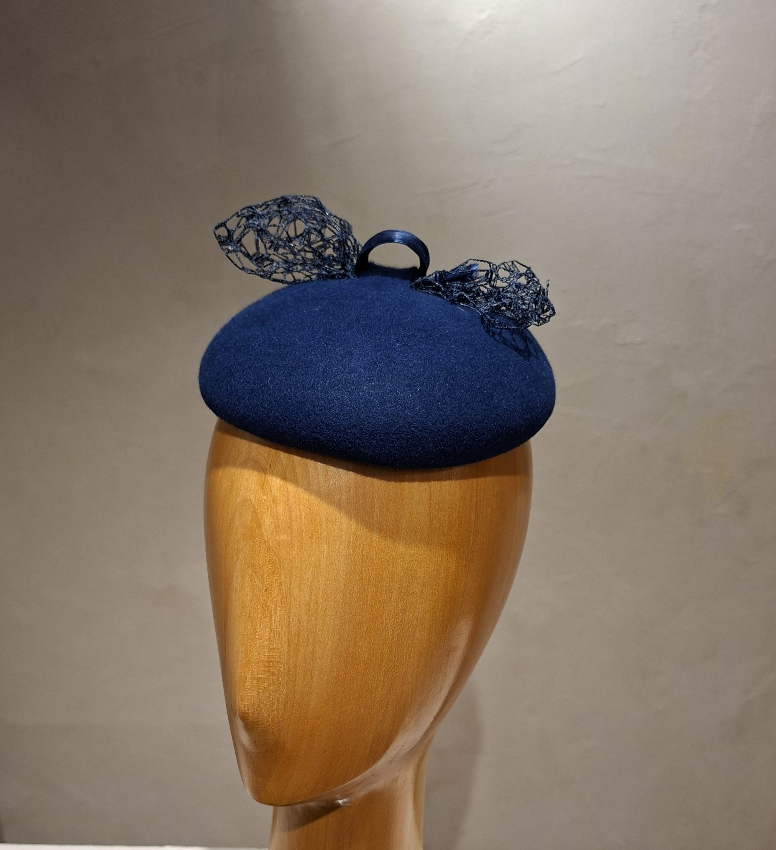 Chapeau femme, type Bibi, en feutre de poil, de couleur bleu